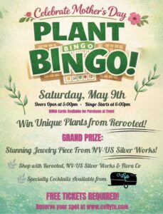Join us for a fun night of bingo and win unique plants from Re-Rooted, NV-US Silverworks, and CV Flyte. Come play bingo, shop with Re-Rooted, NV-US Silverworks, Flora Co and of course specialty cocktails from CV Flyte!!