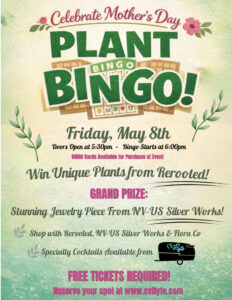 Join us for a fun night of bingo and win unique plants from Re-Rooted, NV-US Silverworks, and CV Flyte. Come play bingo, shop with Re-Rooted, NV-US Silverworks, Flora Co and of course specialty cocktails from CV Flyte!!